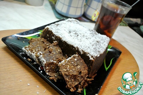 5. Берем любую форму и посыпаем дно кокосовой стружкой. Поверх размещаем халву.