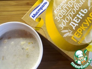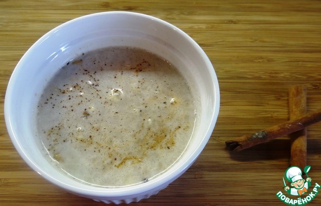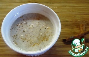 • Хлопья смешать со специями и залить молоком. Обьём стакана, которым я отмеряла хлопья, 200 мл.