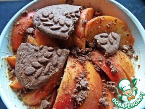 Покрошить любую печенюшку на персик. У меня оказались под рукой шоколадных парочка.