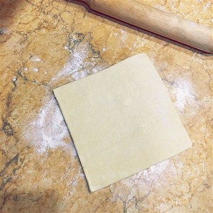 Тесто слоёное ( я использую готовое дрожжевое тесто - 1 пакет или 2 пластины) раскатать и уложить на противень, используйте пекарскую бумагу при необходимости, я же просто смазала противень маслом