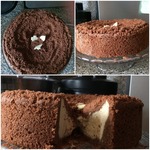 Ну и что касается формы - я взяла стеклянную. Сверху у неё диаметр 22, но у дна Уже. По разрезу поняла, что можно брать форму больше. Просто следующая у меня только 26 см.. Боюсь, что она уже великовата будет, а мудрить с пропорциями лень))