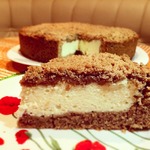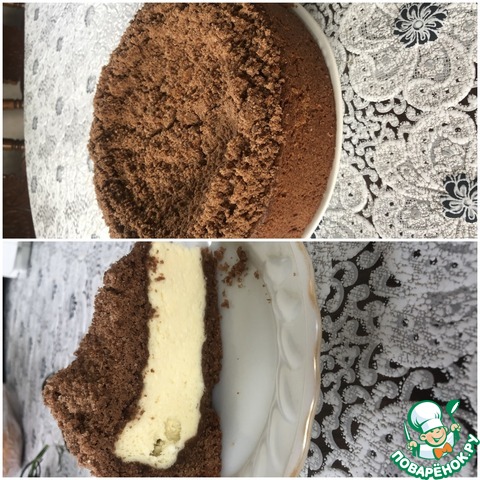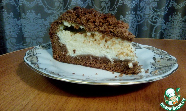 Выложить творожную массу на основу, сверху посыпать крошкой.