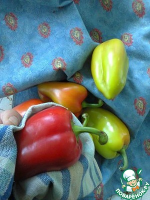Берем перец толстостенный, красный, зеленый, но не белый! Мыть нельзя.