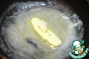 Разогреваем сковороду с добавлением оливкового и 25 г сливочного масла.