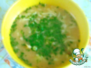 В бульон добавляем картофель. Когда он почти будет готов, добавляем лапшу.