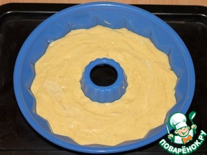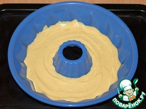 5. Подготовить формочку для кекса. Смазать слегка маслом. Заполнить формочку 1/2 частью теста.
