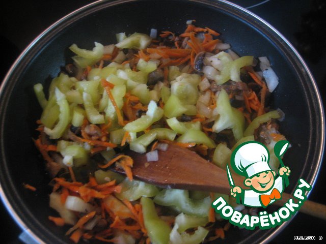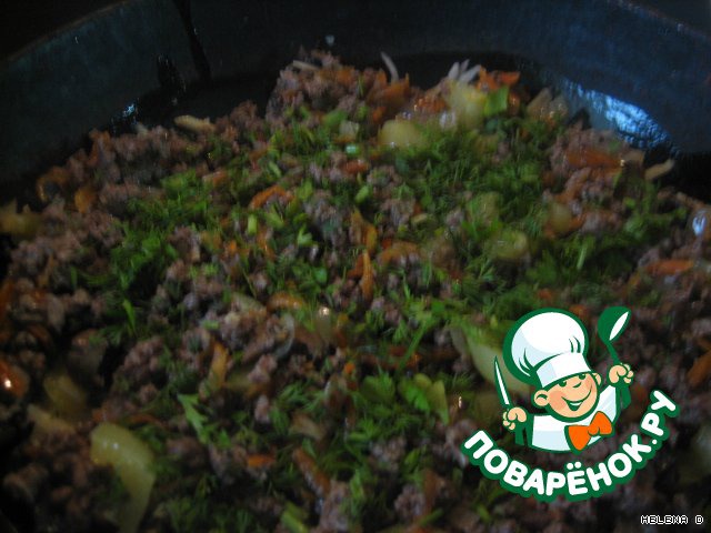 Потом смешиваем всё с фаршем - начинка готова!