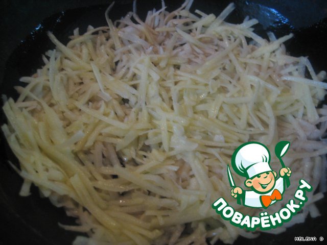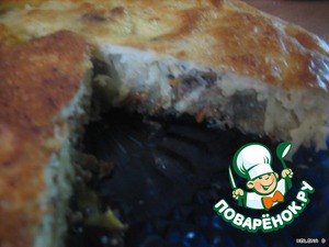 Блюдо возникло из остатков продуктов. Хорошо тем, что и детишки съедят с удовольствием, этот лже-пирожок.