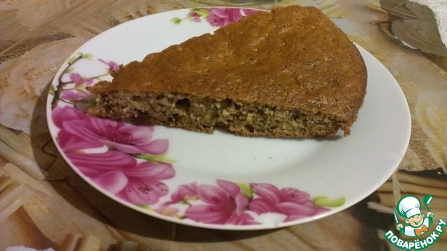 • Яйца взбить с сахаром в пышную пену. Добавить масло и грецкие орехи (я их измельчаю в мясорубке, можно воспользоваться блендером). Орехи должны быть не крупными кусочками.