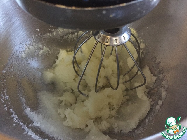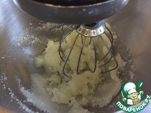 В чашу миксера кладем сахар и растительное масло и хорошо смешиваем на средне-высокой скорости около 1 минуты. Останавливаем миксер и ложкой собираем смесь со стенок в середину.