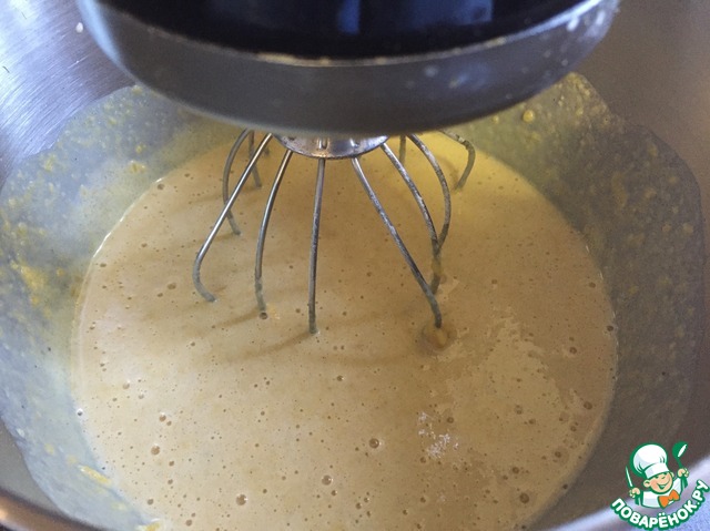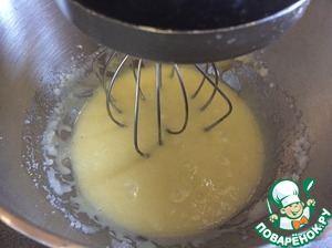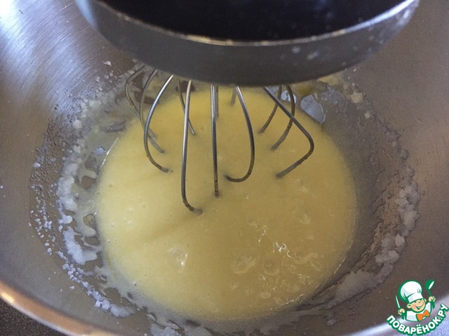 Затем включаем миксер на среднюю скорость и вмешиваем яйца, добавляя по одному.