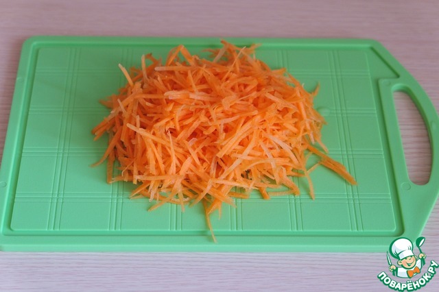 Морковь нашинковать на корейской терке.