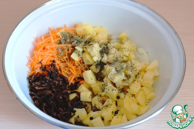 - Пряности (Сушеная пряная зелень: укроп, петрушка, базилик) — 1 ч. л.