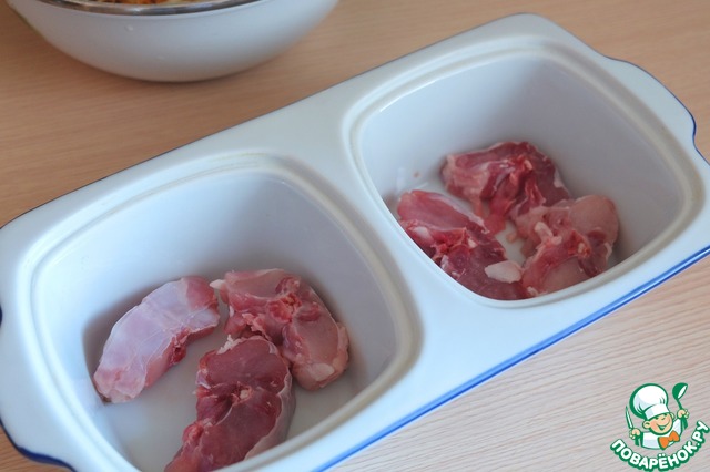 Добавить в формы для запекания мясо кролика на косточке.