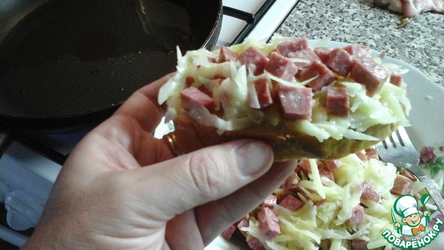 Хочу предложить свой метод их приготовления, но рецепт публиковать не буду, пожалуй, по ингредиентам мои бутеры не отличаются от остальных. Вот везде у всех бутерброды укладываются на сковороду начинкой вниз сначала, а потом переворачиваются. В начале знакомства с такими бутерами я всё так и делала, но меня не устраивало, что сырая начинка растекается по сковороде, бывало, надежно к ней прирастала, и вся эстетика сводилась на нет (сковорода была и есть не антипригарная). В этих муках родилась идея укладывать их сначала хлебом вниз (= начинкой вверх), накрыть сковородку крышкой и зарумянить хлеб снизу, при этом начинка схватывалась, и можно было легко и без проблем перевернуть бутеры начинкой вниз (=хлебом вверх), чтобы прожарить начинку. Эстетично, надежно и практично.