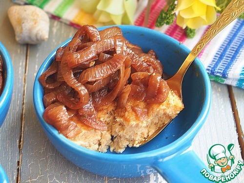 После вынуть формочки из духовки и сверху разложить луковый конфитюр.
