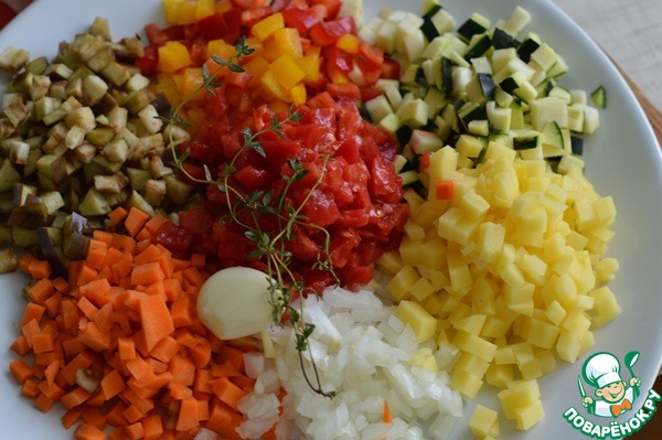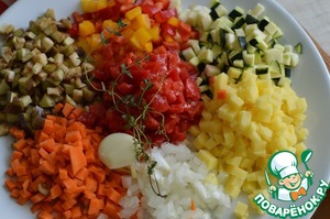 Овощи вымыть, почистить и нарезать мелким кубиком.