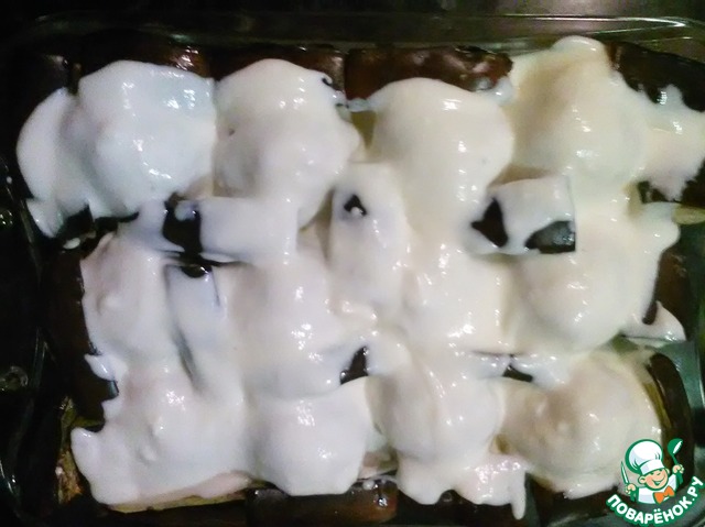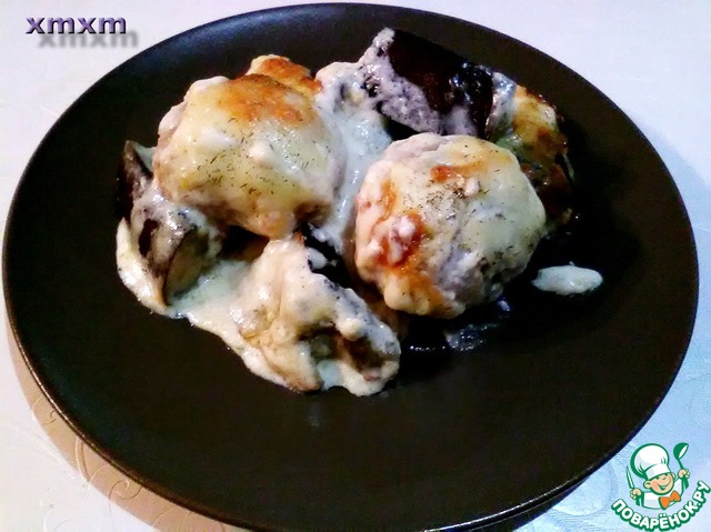 Рецепт «Тефтели с баклажанами под сливочным соусом»:
