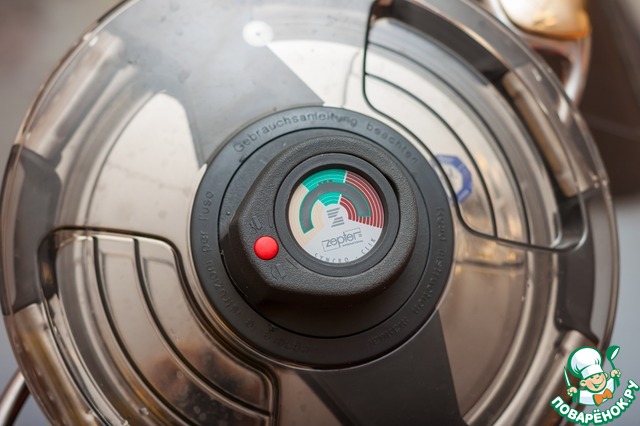 Периодически поглядываем на стрелку, она должна оставаться в пределах зеленого поля. Через полчаса снимаем кастрюлю с нагрева и оставляем томиться еще на 30 минут.