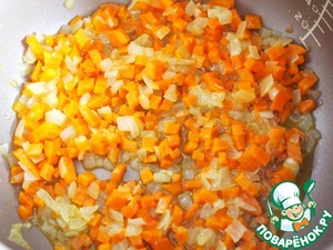 Морковь почистить, помыть и нарезать мелкими кубиками (можно натереть на крупной тёрке).