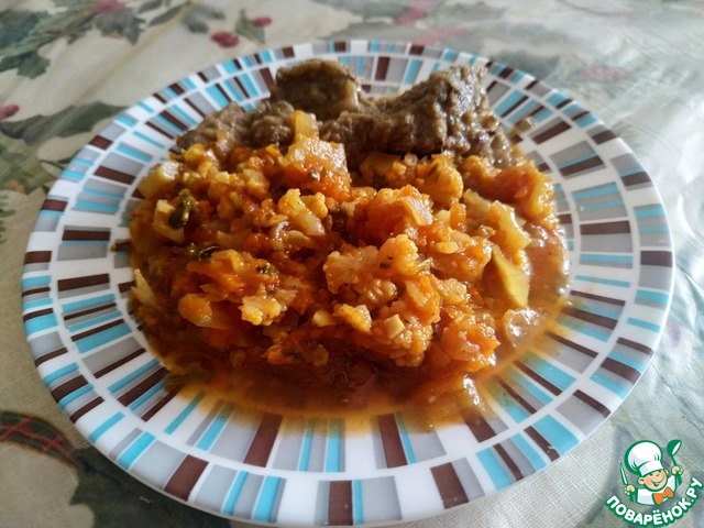 Добавить нарезанную цветную капусту к луку с морковкой.