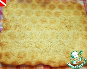 Тесто лопаточкой разложить на силиконовый коврик или бумагу для выпечки. Толщина слоя примерно 5-7 мм. Выпекать в духовке минут 7-10 до золотистого оттенка.