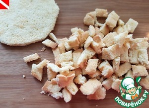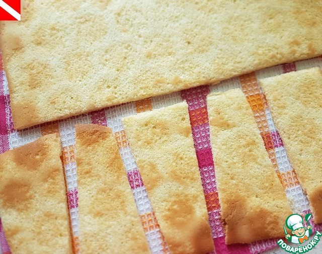 Оставшийся бисквит нарезать на небольшие кусочки.