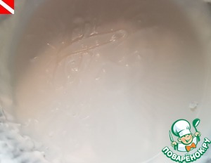 Готовим кокосовый мусс. Желатин распускаем удобным для вас способом ( я - 10 секунд в микроволновке), смешиваем его с кокосовым молоком комнатной температуры.