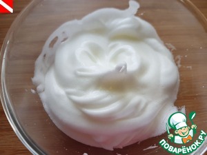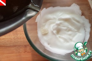Тоненькой струйкой влить в белки, не прекращая взбивать