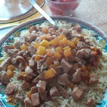 Подавать бабочки, сверху положив мясо и тыкву. Мне очень это блюдо понравилось. Рецепт мною взят из соцсетей.