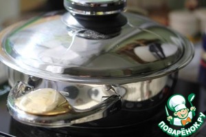 Закрыть сотейник крышкой, поставить на холодную плиту, включить средний нагрев.