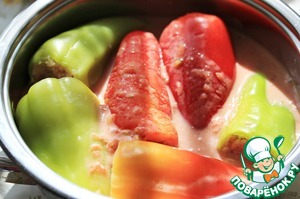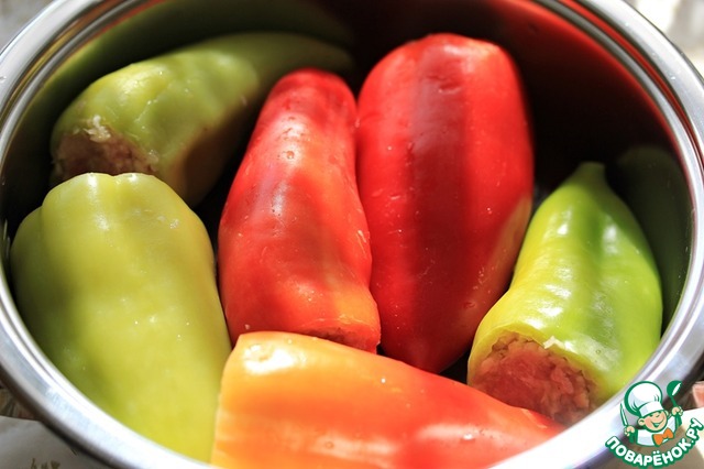 Набить перцы фаршем.