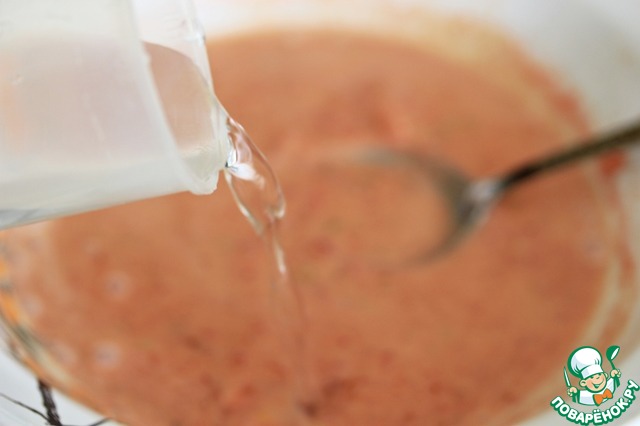 Добавить в соус немного воды и размешать. Я, к сожалению, не записала точное количество, но не более 100 мл. Можно использовать меньшее количество воды, но я люблю, чтобы соуса было достаточное количество.