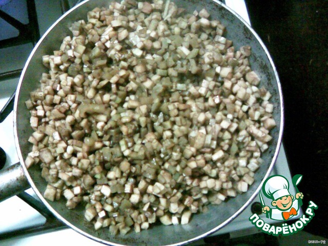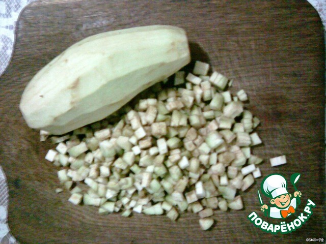Чистим баклажаны, режем мелкими кубиками. Это самая трудоемкая часть приготовления, поэтому хорошо если есть помощник! :-)