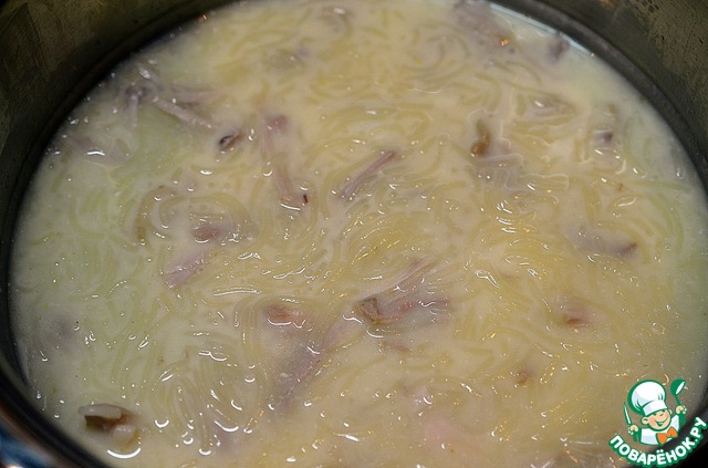 Добавить вермишель, накрыть крышкой. Через 10 минут выключить плиту.