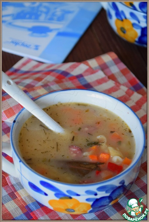 Добавляем специи, лавровый лист. Пробуем на соль и, если необходимо, досаливаем. Закрываем кастрюлю крышкой и держим на огне 2 мин. Огонь отключаем и даем "настояться" супчику минут 10.