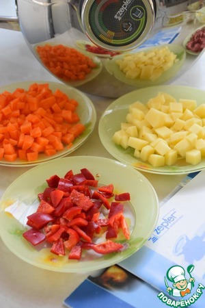 Продолжаю осваивать посуду Zepter. Хочу предложить Вам суп, приготовленный без капли жира, а овощи готовим без воды, в собственном соку. В результате получается полезный суп (при готовке сохраняются все полезные свойства), очень ароматный, красивый, яркий. Угощайтесь!