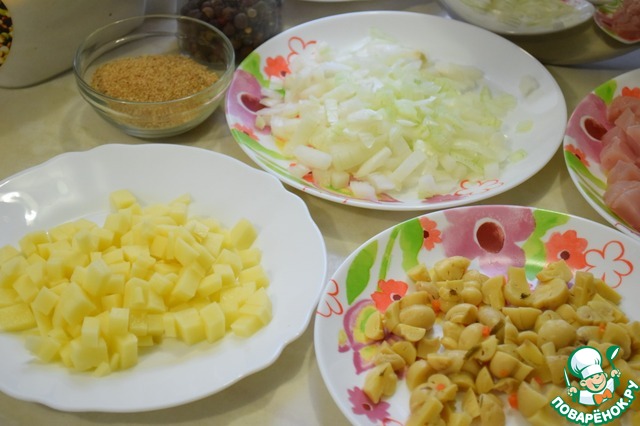 Замечательной посуды Zepter у нас нет и не предвидется, готовила сначала на сковороде, поэтому добавляла немного растительного масла.