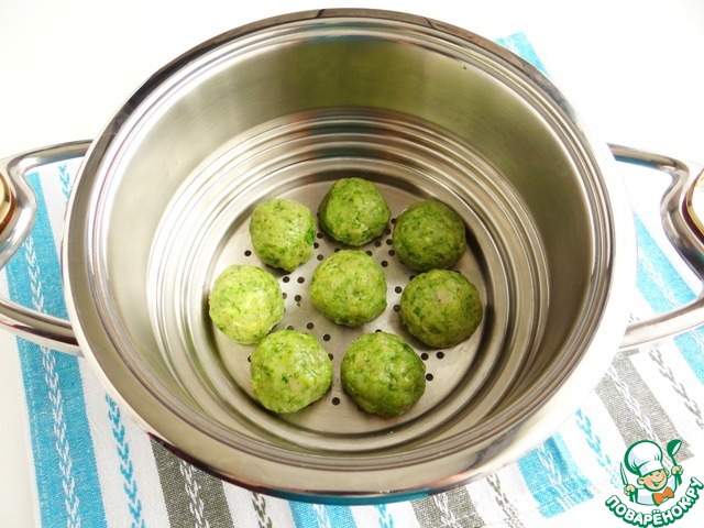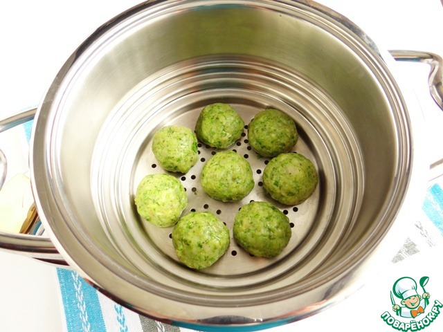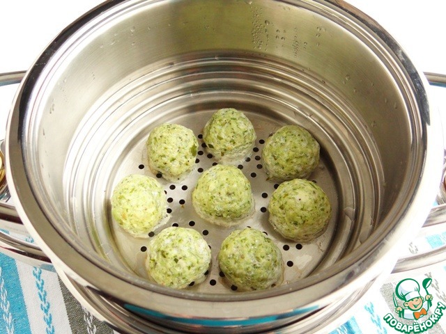 Фарш делю на 8 частей, формирую фрикадельки и выкладываю их в пароварку Zepter.