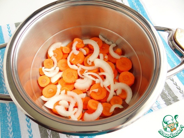 Морковь нарезаю кружочками, выкладываю в кастрюлю Zepter на 3 литра.