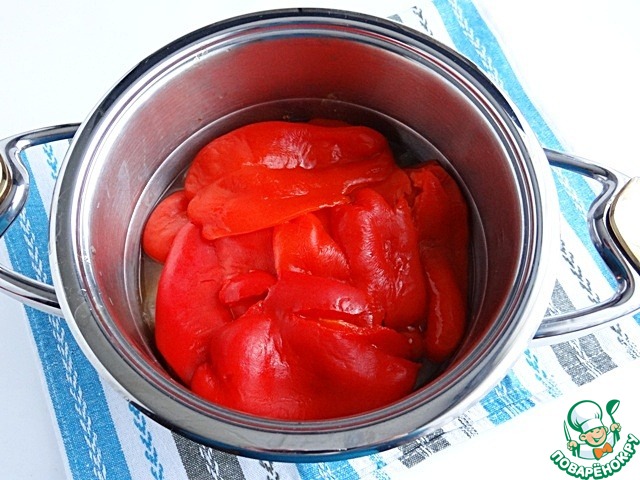 Затем выкладываю половинки сладкого перца.