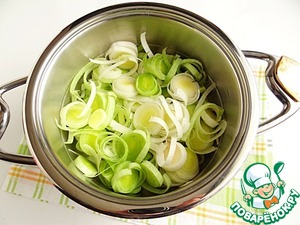 Выкладываю лук-порей в кастрюлю Zepter на 3 литра.