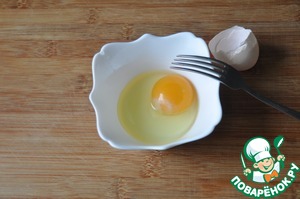 В миску разбиваем яйцо и взбиваем его вилкой.