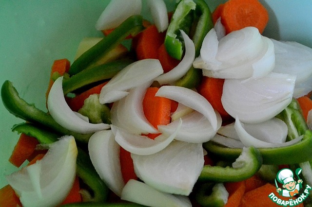 Кладем сверху овощи