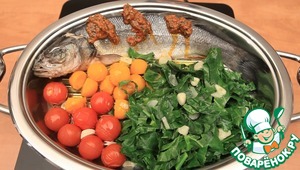 2. Порежьте дикую капусту, чеснок, сделайте шарики из тыквы. Положите рыбу и овощи в холодный овальный гриллер Zepter.