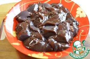 Печень промолоть в однородную массу вместе со специями, яйцом, и 1 столовой ложкой соевого соуса.