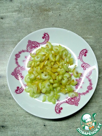 Сельдерей вымыть, нарезать небольшими кусочками.