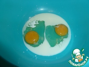 В глубокую миску влить молоко, вбить яйца и всыпать ванилин, хорошенько размешать вилочкой или венчиком