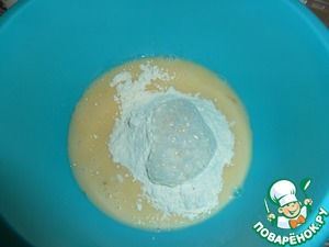 Затем в эту смесь начинаем порциями подсыпать муку (в муку всыпаем соду и гасим ее уксусом), хорошенько вымешиваем, муки сыпать столько, чтобы получилось крутое тесто