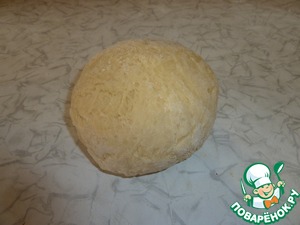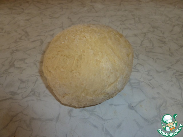 Выкладываем тесто на стол и собираем его в колобок, оно не должно липнуть к рукам и столу